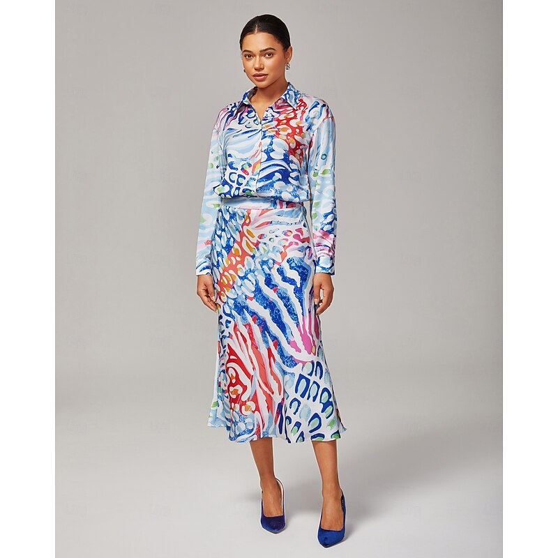 Women's Watercolor Leopard Satin Mermaid Skirt Elastic Waistband Lined Elegant Stylish Casual Bold Print Daily Work Fall 1