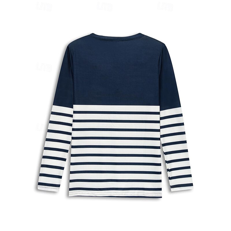 Women's T shirt Long Sleeve V Neck Long Sleeve Tunic Striped Basic Regular Tops Daily Weekend Print Navy Blue Fall & Winter Prefall 11