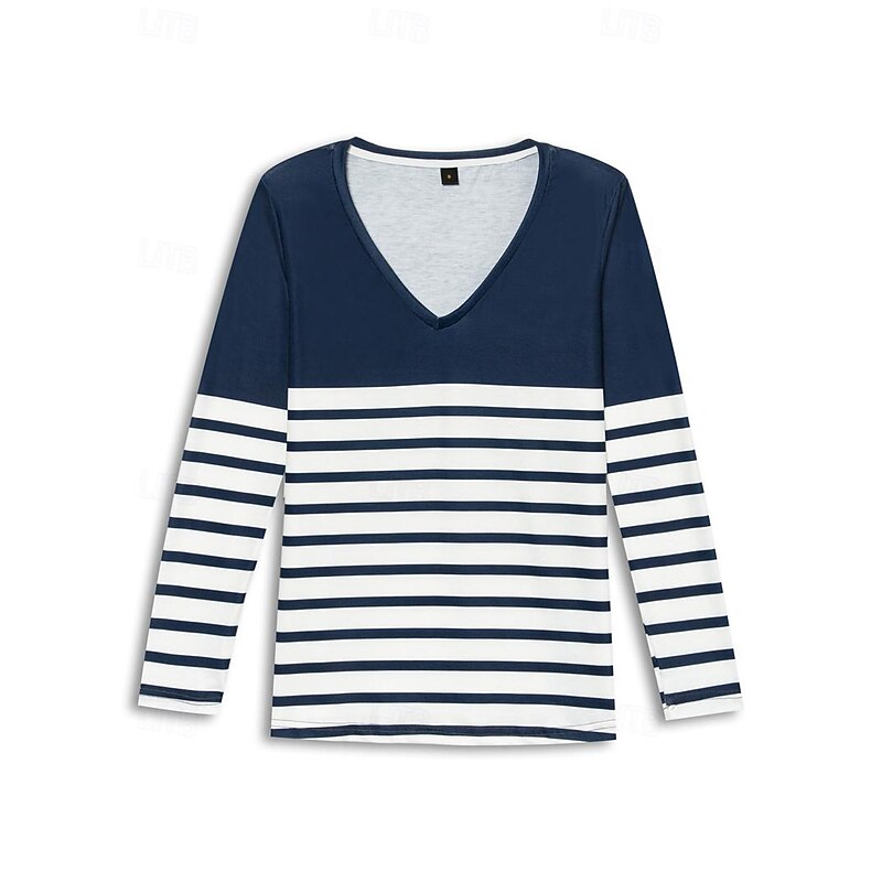 More information about Women's T shirt Long Sleeve V Neck Long Sleeve Tunic Striped Basic Regular Tops Daily Weekend Print Navy Blue Fall & Winter Prefall