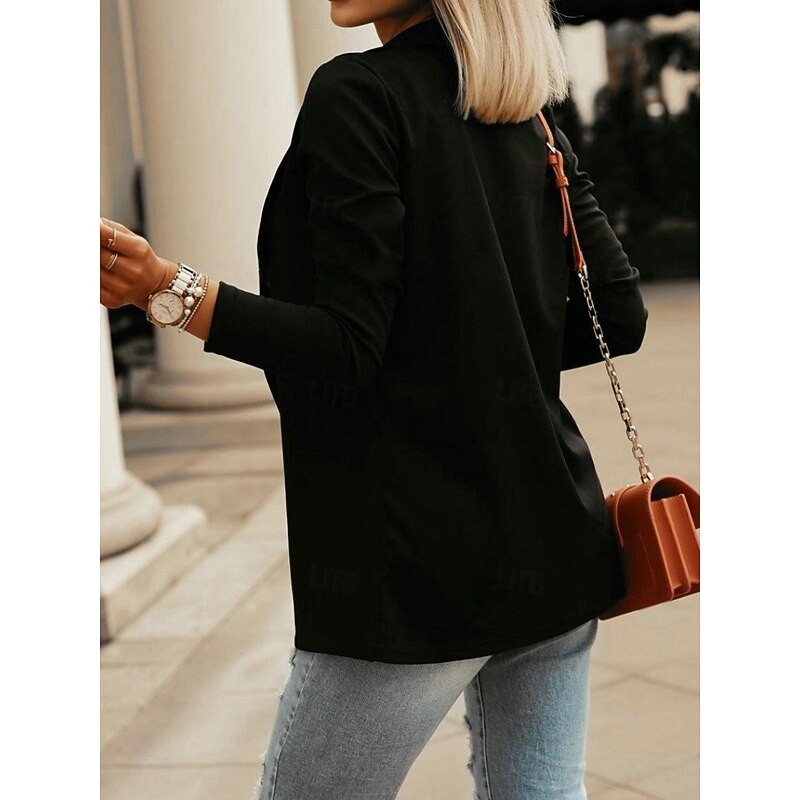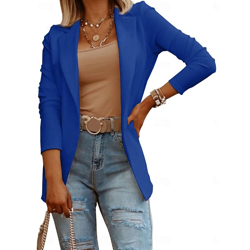 HOT ! Women's Blazer Comfortable Breathable Slim Fit Casual Plain Office Street Casual Daily Wear Open Front Regular Turndown Slim Long Sleeve Outerwear Black White Blue Fall