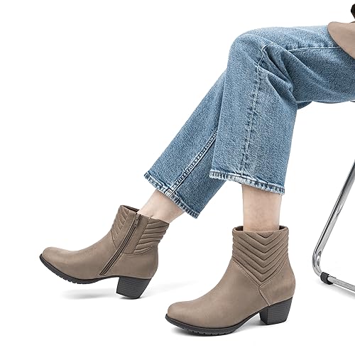 VJH confort Women's Ankle Boots, Round Toe Low heel Comfort Dress Booties with Zipper 4