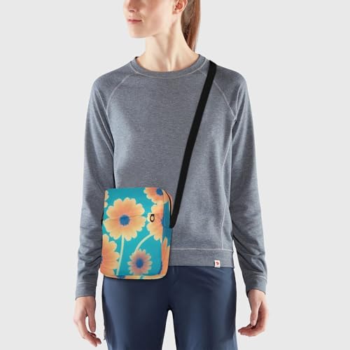 Crossbody Sling Bag for Women Men, Zipper Closure Messenger Bags Orange Flowers Print with Card Phone Passport Compartment 6.6×9.4×2.5 IN 1