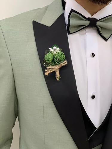 Wangyue Men's Tuxedo Suits Slim Fit 3 Piece Suit Peak Lapel Formal Wedding Prom Suits with Bow Tie 6