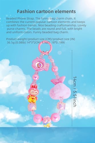 • Fashion cartoon elements: The funny bag charm chain. It combines the current popular cartoon elements and keeps up with fashion trends. Nice beading craftsmanship. Lovely purse charms. The beads are round and full, with bright and uniform colors. Funny beaded bag charm.