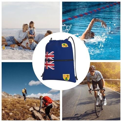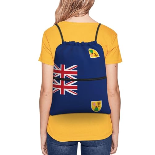 HOT ! Flag Of The Turks And Caicos Islands Drawstring Zipper Backpack - Versatile, Durable, And Stylish Design For Everyday Use, Black