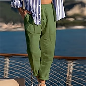 More information about Men's Linen Pants Trousers Summer Pants Beach Pants Drawstring Elastic Waist Straight Leg Plain Comfort Breathable Casual Daily Holiday Fashion Classic Style White Army Green