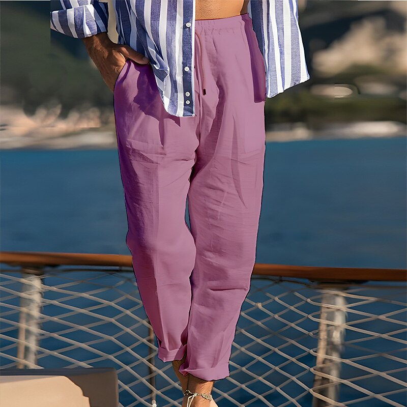 Men's Linen Pants Trousers Summer Pants Beach Pants Drawstring Elastic Waist Straight Leg Plain Comfort Breathable Casual Daily Holiday Fashion Classic Style White Army Green 9
