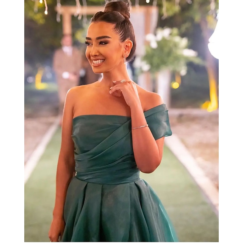 More information about A-Line Evening Gown Dress Wedding Guest Prom Sweep / Brush Train Short Sleeve One Shoulder Organza with Ruched Slit