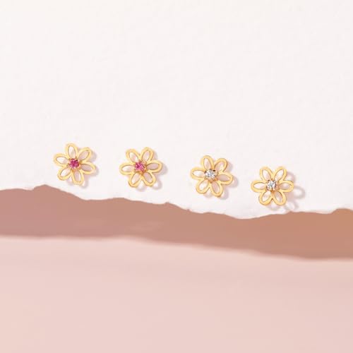 HOT ! 14k Yellow Gold Dainty Cubic Zirconia Young Girls Open Flower Earrings with Safety Screw Backs - Small Flower Stud Earrings for Toddlers with Locking Screw Backs for Safety & Comfort
