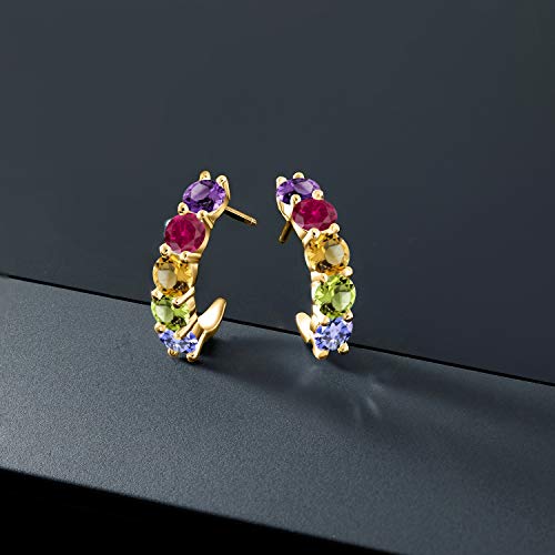 More information about Gem Stone King 18K Yellow Gold Plated Silver Customized and Personalized 5 Round 4.5MM Gemstone Birthstone Open Hoop Earrings For Women