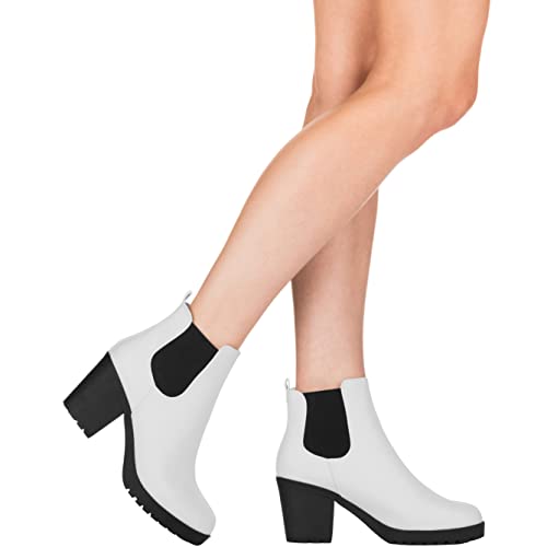 ILLUDE Women’s Ankle Boots Chelsea Bootie Chunky Block Heel Round Toe Boot 1