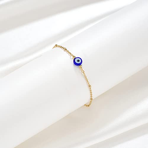 Dainty Evil Eye Bracelets for Women, Gold Plated Adjustable Evil Eye Lucky Amulet Chain Bracelet Jewelry Gifts 7