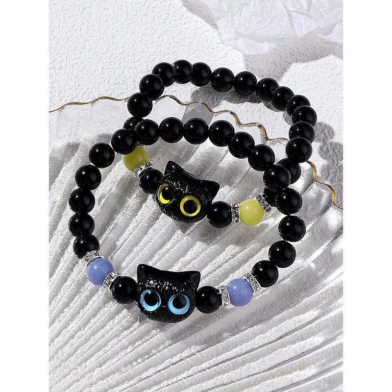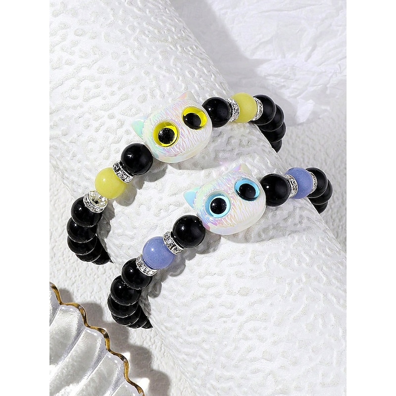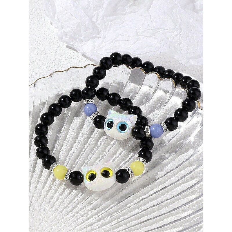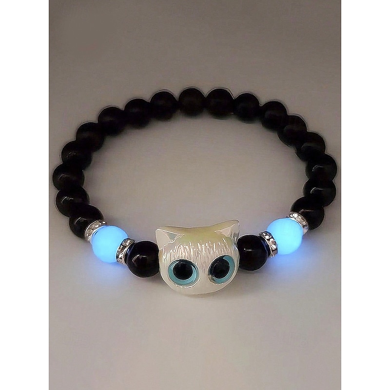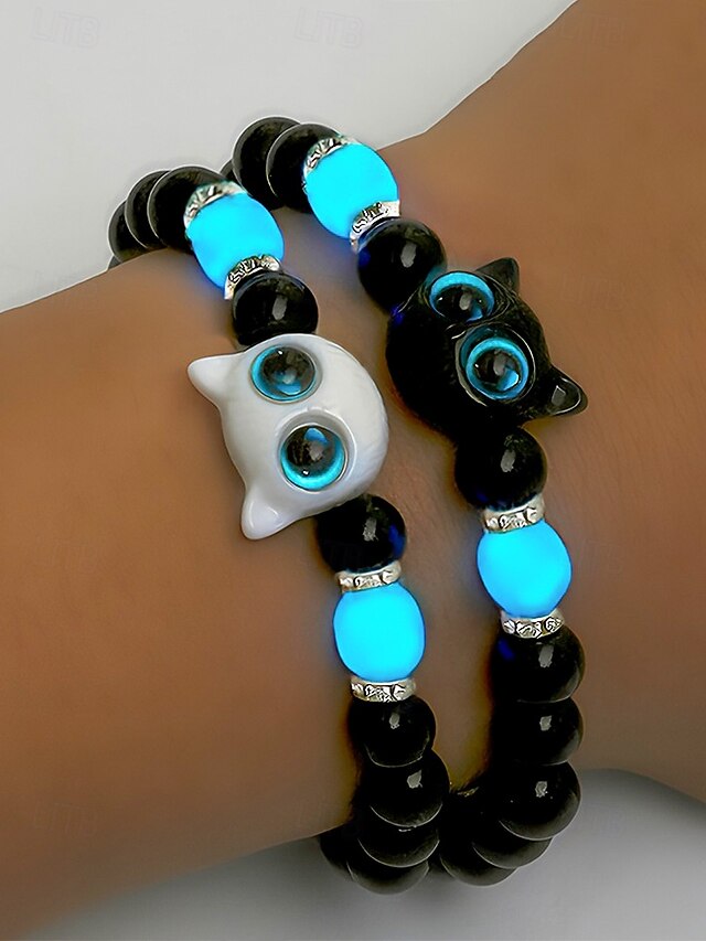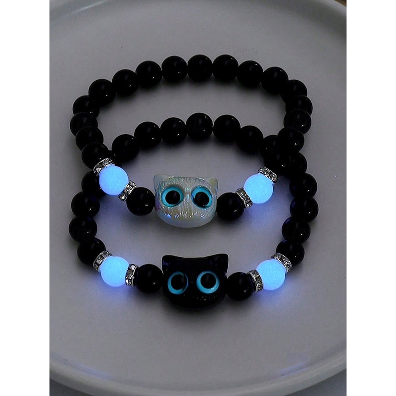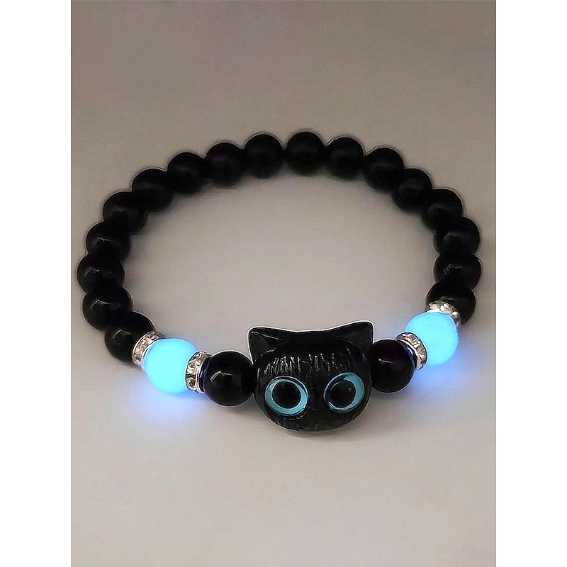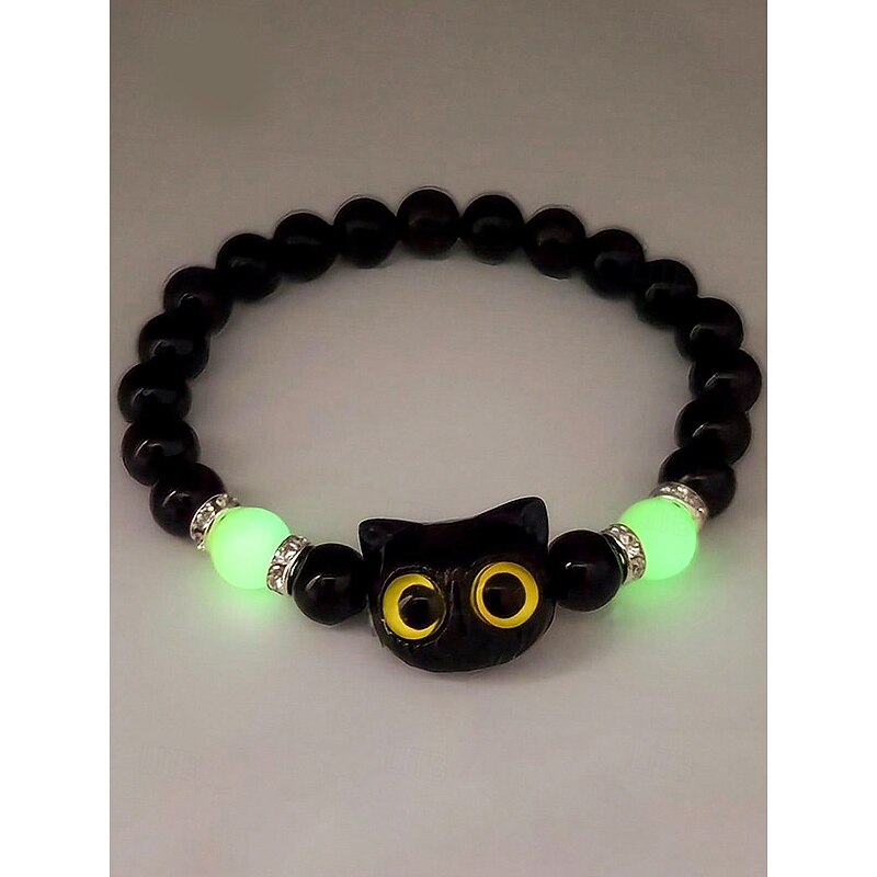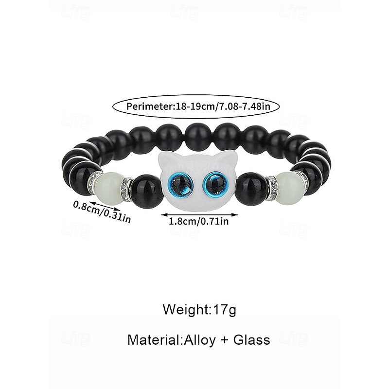 $7.99 - Women's Halloween Glow in the Dark Cat Beaded Bracelet – Cute Black and White Kitty Charm Stretch Wristband Jewelry for Party, Cosplay and Gifts 2025. Shop for cheap Halloween Accessories online? Buy at lightinthebox.com on sale today!