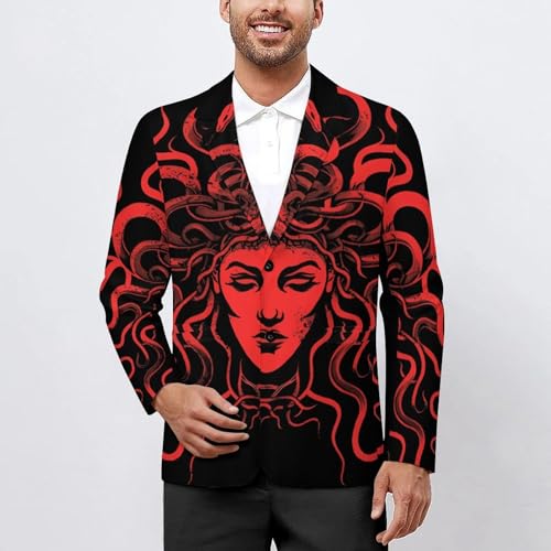 Red Medusa Head Casual Suits Jackets for Men Two Buttons Business Coat Wedding Dinner Party 1