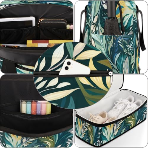 Green Natural Plant Travel Duffle Bags With Shoes Compartment for Women Men Weekender Overnight Bag Foldable Sports Tote Gym Carry On Luggage Handlebag for Travel Yoga Hospital Workout 7