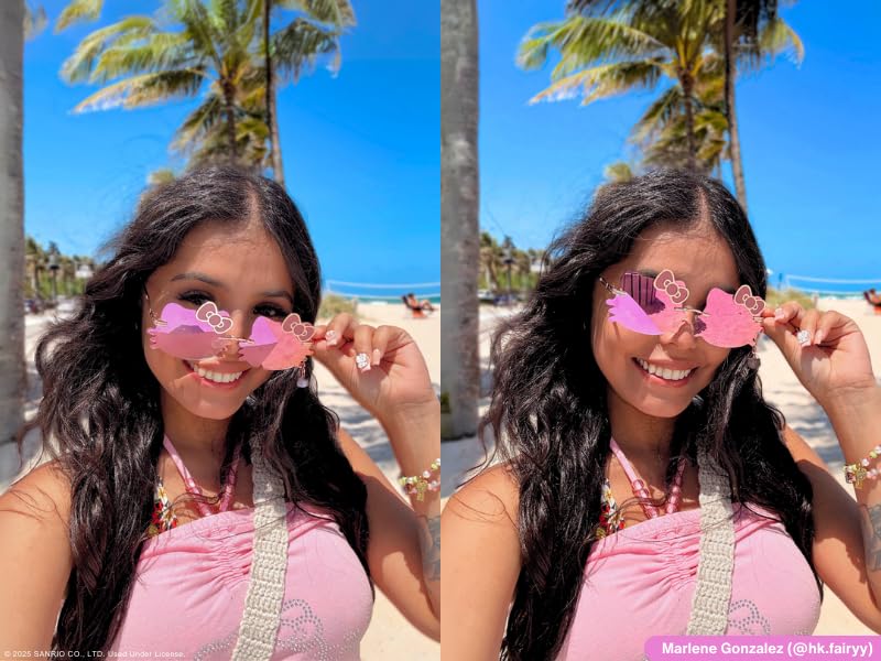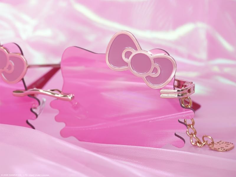 • DESIGN HIGHLIGHT: Ultra-cute pink mirrored lenses shaped favor Hello Kitty's iconic face, complete with signature bows on each side for a playful look.