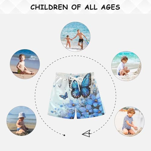 Pigsaly Boys Swim Trunks Blue Flowers Blue Butterfly Boys Board Shorts Swimsuit Swimwear Summer Bathing Suit 3T 4