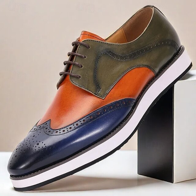 Men's Two-Tone Leather Derby Shoes – Stylish Orange and Blue Dress Shoes for Prom and Social Gatherings 1