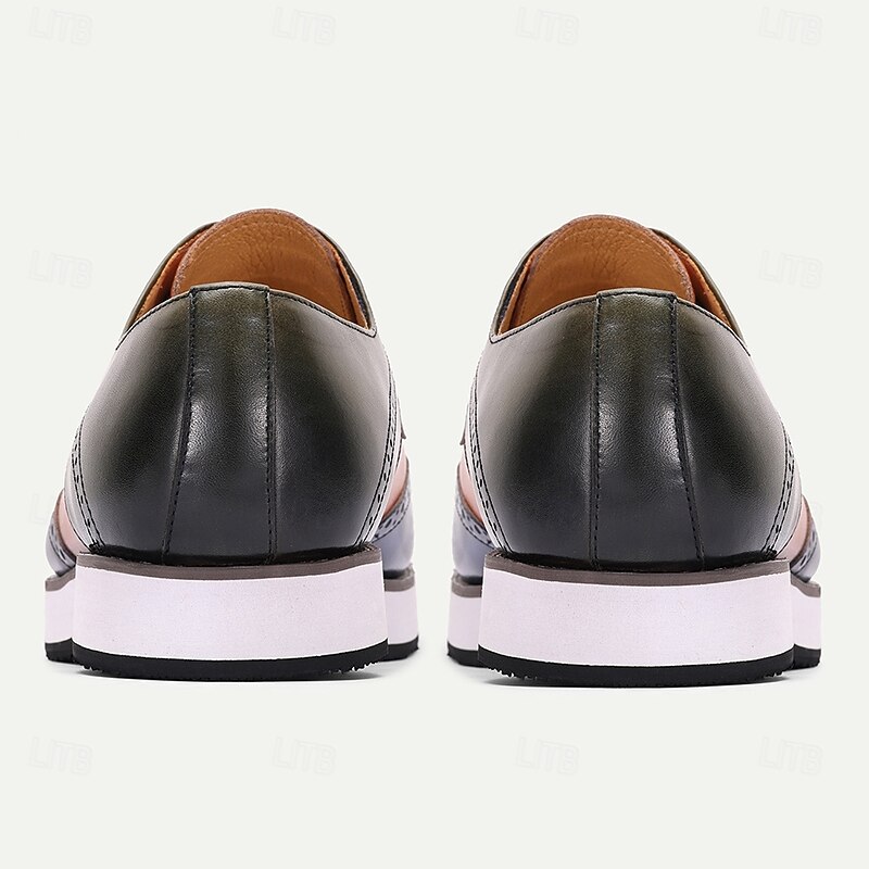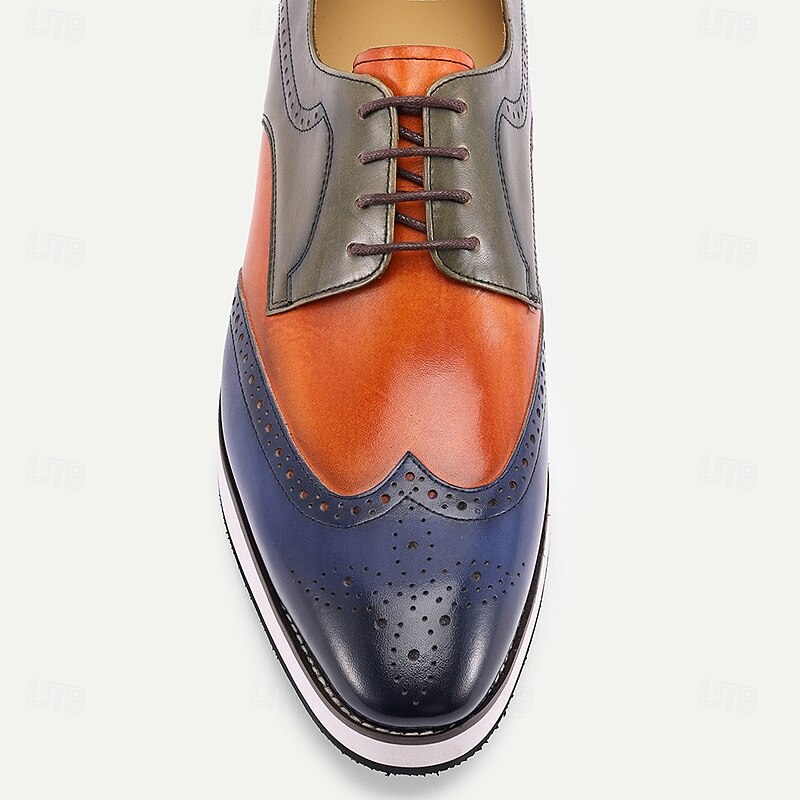 Men's Two-Tone Leather Derby Shoes – Stylish Orange and Blue Dress Shoes for Prom and Social Gatherings 6