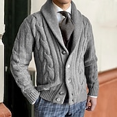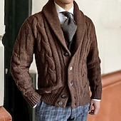 More information about Men's Cardigan Sweater Cropped Sweater Knit Button Up Knitted Plain Shawl Collar Vintage Warm Ups Casual Daily Wear Clothing Apparel Fall Winter Black White M L XL