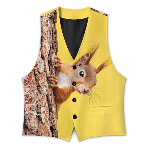 Cute Red Squirrel Peeking From Tree Novelty Men's Suit Vest Funny Formal Dress Vests Business Waistcoat