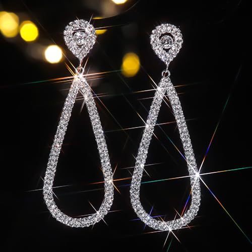 HOT ! Bling Rhinestone Earrings for Women,Sparkly Silver Teardrop Dangling Earrings Trendy Large Chandelier Earring,Bridal Wedding Jewelry Accessories Gift