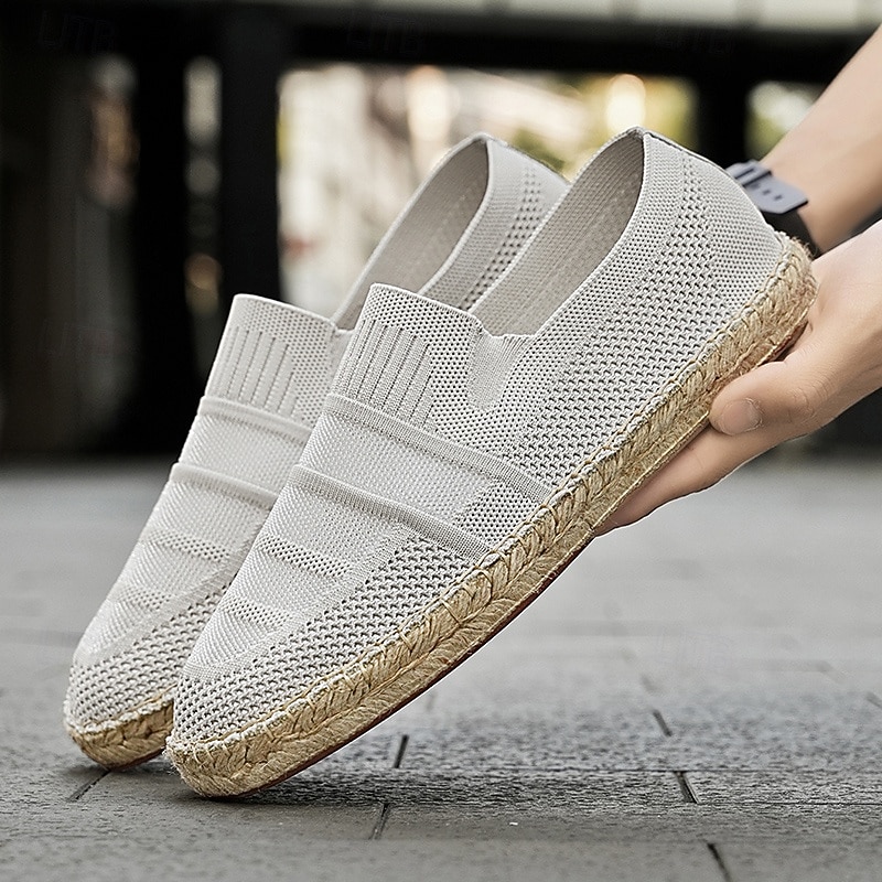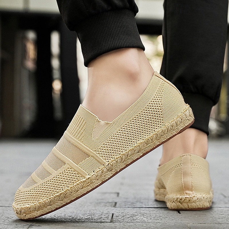 HOT ! Men's Beige Vacation Espadrilles with Woven Design – Comfortable and Stylish Footwear for Summer and Beach Outings