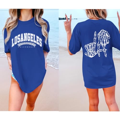 HOT ! Oversized Baseball Shirts for Women Los Angeles Game Day Baseball Fan Shirt Skeleton Hands Graphic Tees Shirts