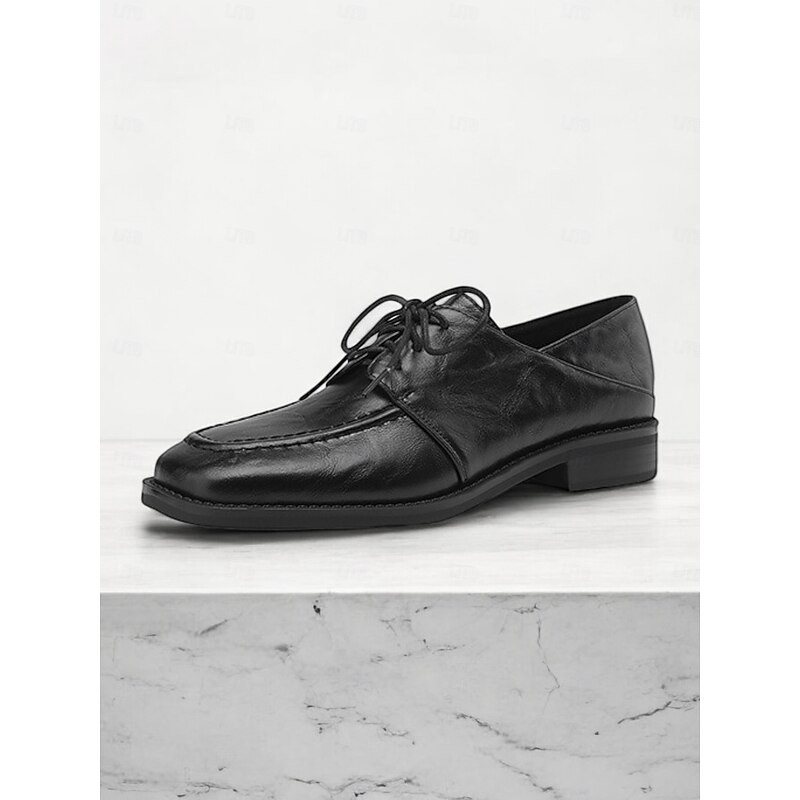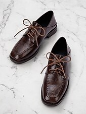 Highlights [Fabric and Material]: Crafted with high-quality faux leather, these women's Oxford shoes boast a sleek and polished finish. The durable rubber outsole provides excellent grip, ensuring stability and comfort throughout the day. [Style and Fit]: Designed in a classic Oxford style, these shoes feature a timeless lace-up design and a sophisticated square toe shape. The flat heel ensures comfort, making these shoes perfect for prolonged wear. [Design Highlights]: The elegant lace-up closure allows for a secure and customizable fit, adding a touch of retro charm to your ensemble. The square toe design enhances the shoes' stylish appeal, making them a versatile addition to any wardrobe. [Occasions]: Perfect for office settings and business wear, these shoes lend a touch of class to both formal and casual outfits. Whether paired with tailored trousers for a professional look or denim jeans for a smart-casual style, these Oxfords are a versatile choice for various occasions. [Size Information]: Available in a range of sizes to ensure a perfect fit, these shoes cater to a variety of foot sizes, offering both comfort and style for your everyday needs.