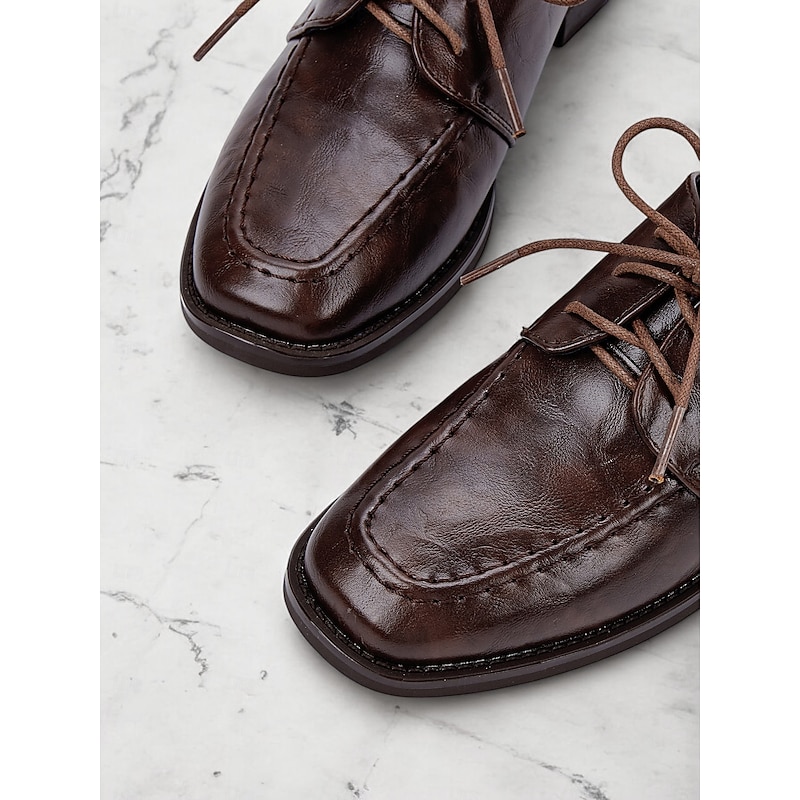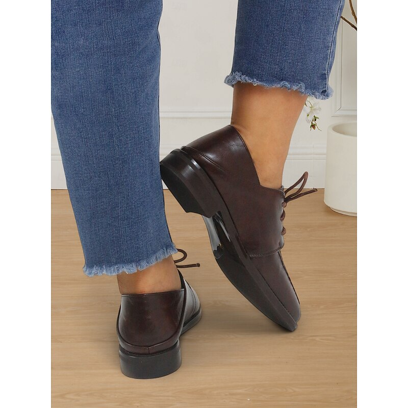 Women's Classic Brown Faux Leather Oxford Shoes - Lace-Up Design, Retro Style, Comfortable Formal Footwear for Office or Business Wear 12