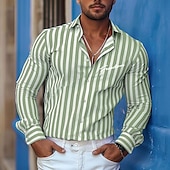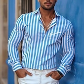 HOT ! Men's Dress Shirt Printed Shirts Stripe Outdoor Street Royal Blue Blue Green Long Sleeve Turndown Spring & Summer Clothing Apparel Print