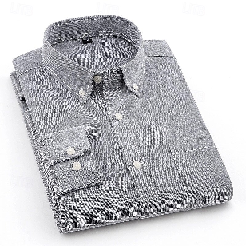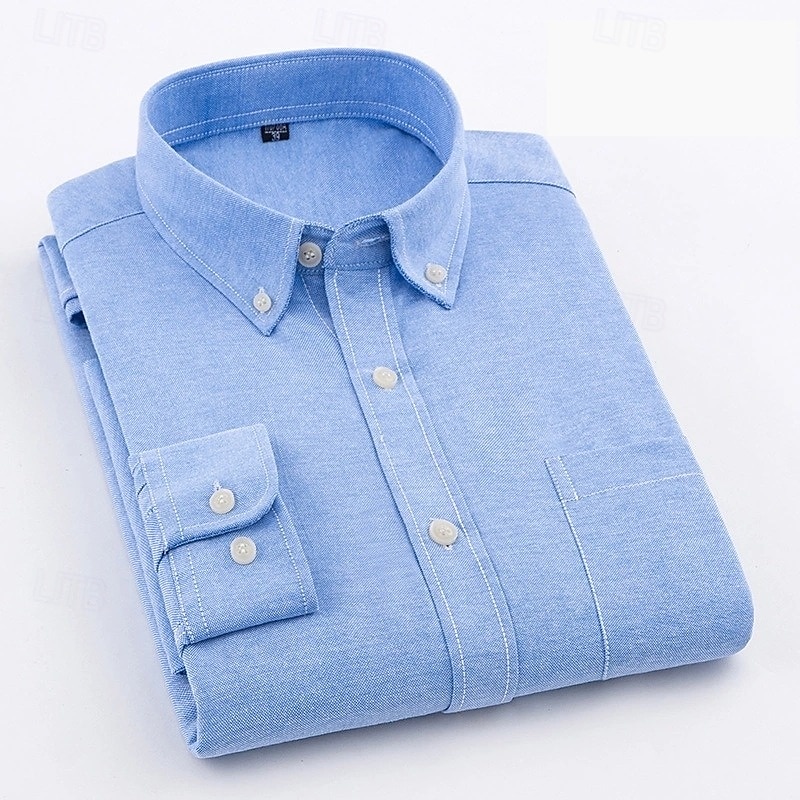 Men's Dress Shirt Button Down Shirt Oxford Shirt Plain Wedding Work Light Blue Black White Blue Long Sleeve Button Down Collar All Seasons Clothing Apparel Collared Shirts 1