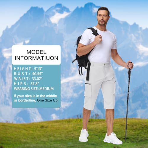Men's 15" Long Shorts Below Knee Capri Hiking Casual Cargo Short Zippers Pockets Quick Dry Lightweight Water Resistant 5
