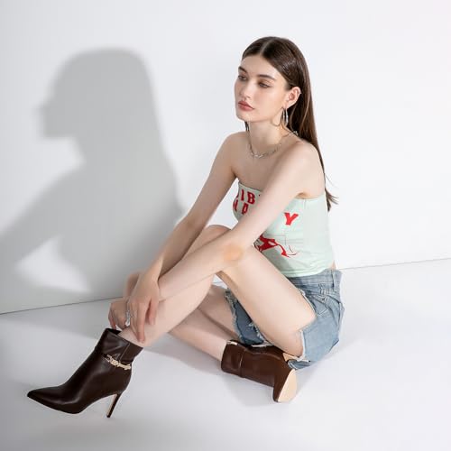 MIRAAZZURRA Ankle Boots for Women Pointed Toe Stiletto High Heel Sexy Ankle Booties with Chain Side Zipper for Party Date Dress 6