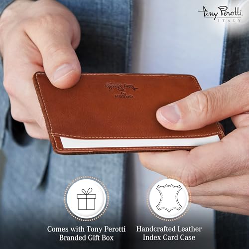 HOT ! Tony Perotti Italian Leather Pocket Index Card Holder 3x5 - Portable Index Card Case - Memo Jotter Note Card Case Holds 3" x 5" Index Cards - Cognac