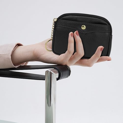 Women Leather Coin Purse, Small Change Wallet Coin Pouch with Key Chain and Zip Portable Change Purse for Women (Black) 5