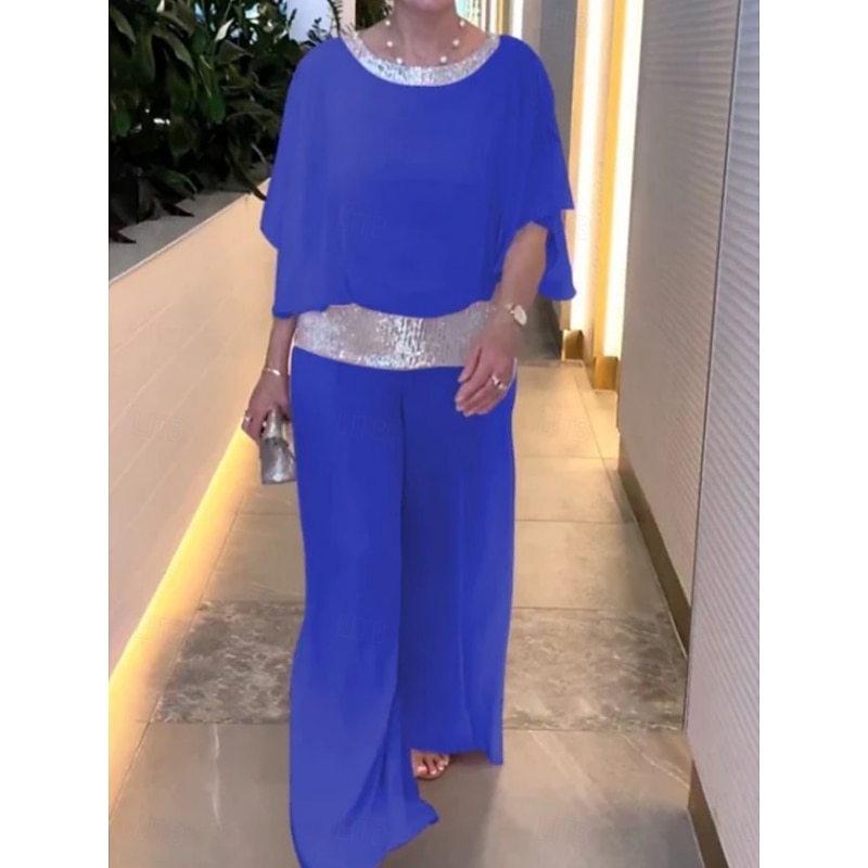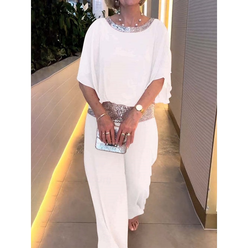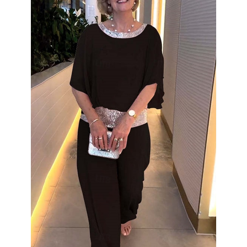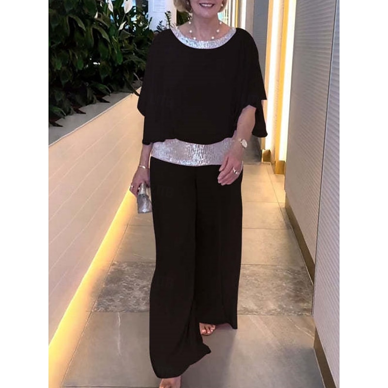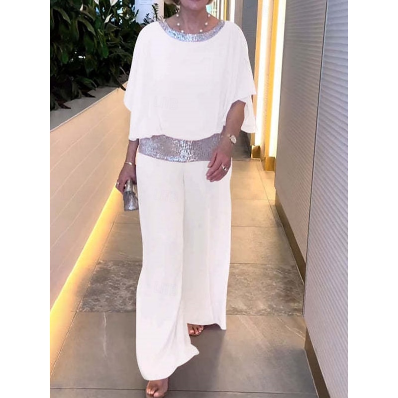More information about Women's 2 Pieces Fashion Streetwear Daily Pants Sets 3/4 Length Sleeve Crew Neck Solid Color Sequins Patchwork Casual Daily Black White Pink Summer Regular Fit