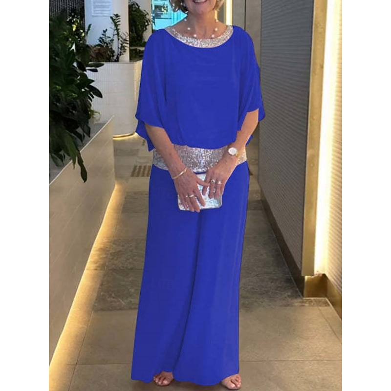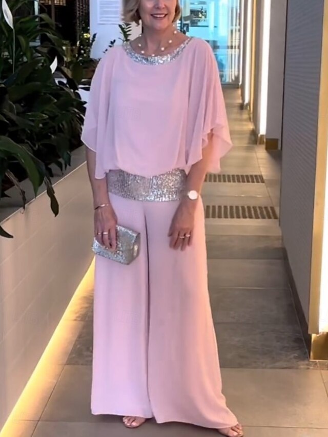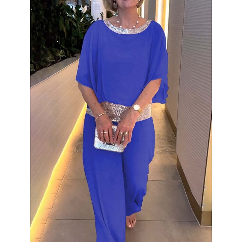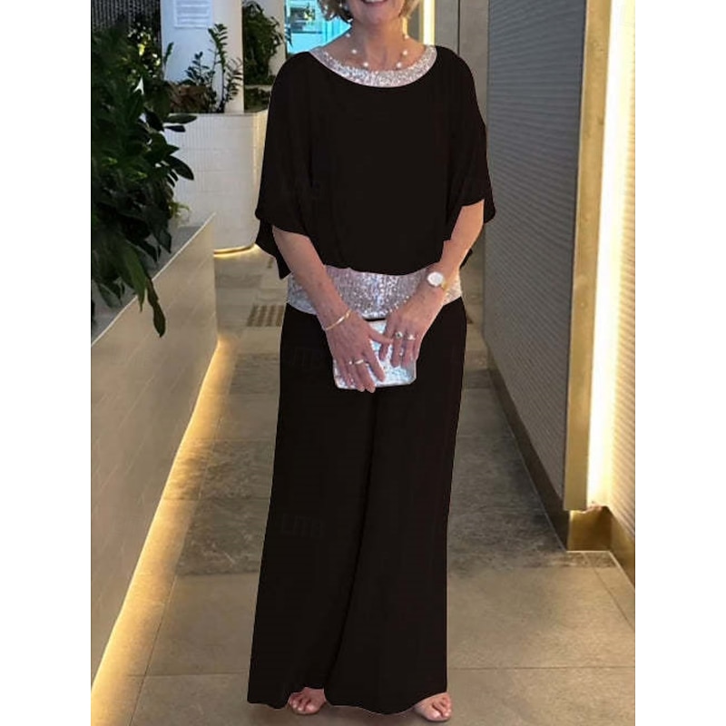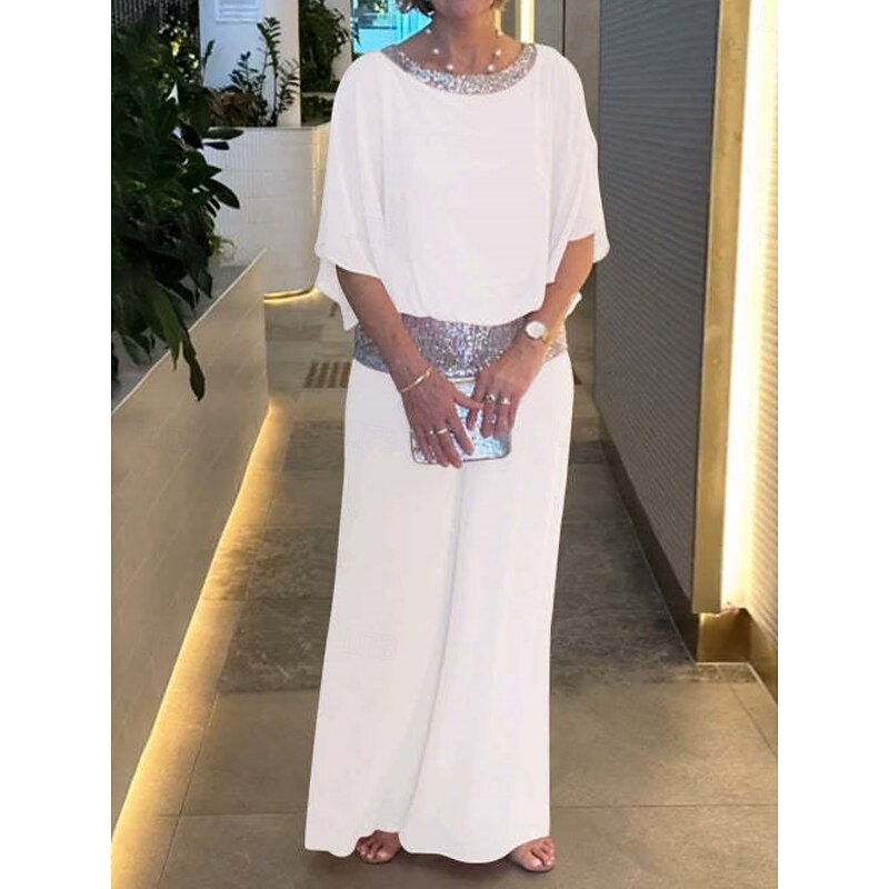 More information about Women's 2 Pieces Fashion Streetwear Daily Pants Sets 3/4 Length Sleeve Crew Neck Solid Color Sequins Patchwork Casual Daily Black White Pink Summer Regular Fit