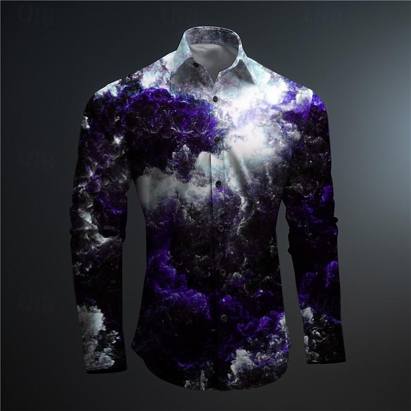 More information about Men's Optical Illusion Geometric Pattern Button Up Shirt Printed Shirts Long Sleeve Subcultural Vacation Party Street Spring & Summer Turndown Print Button-Down Red Blue Purple