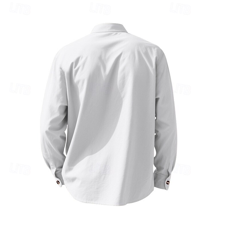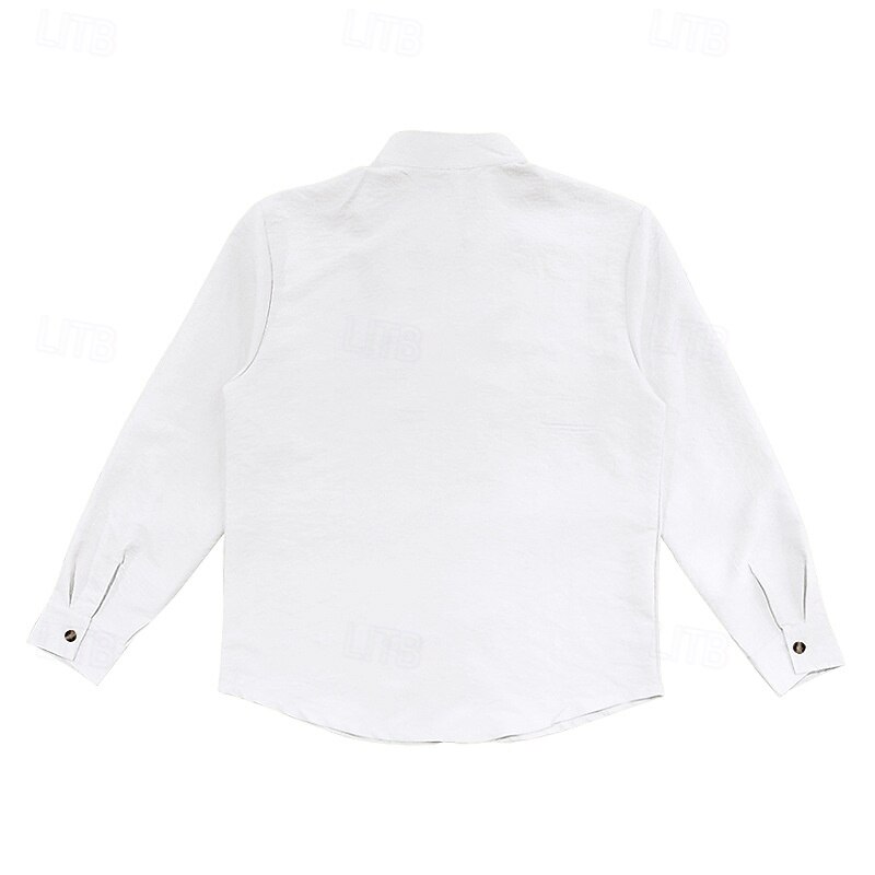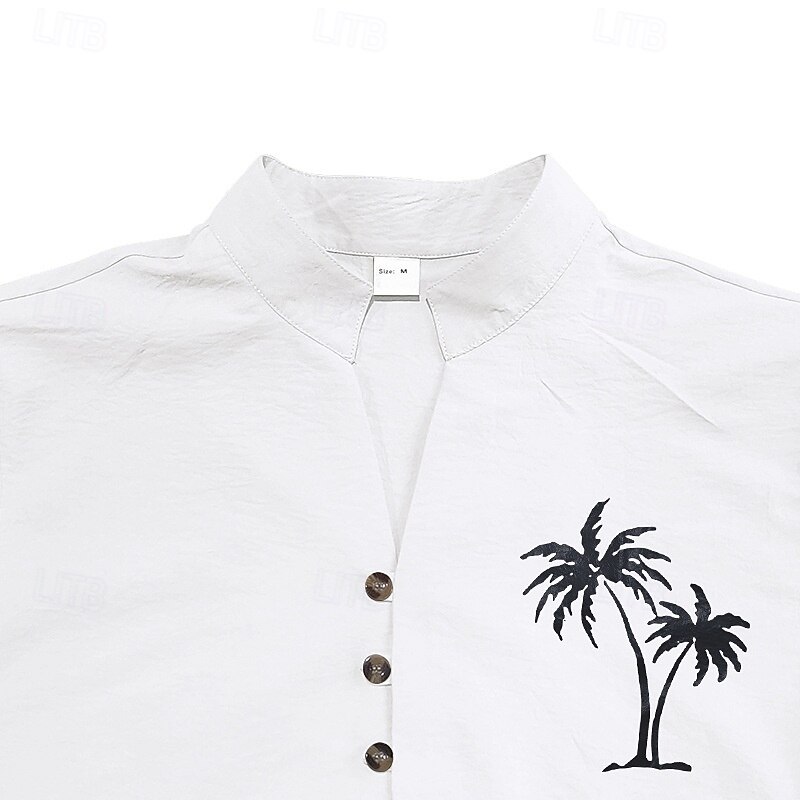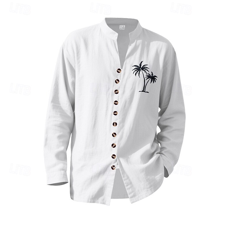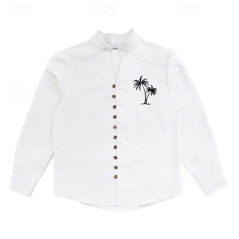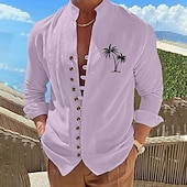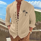 More information about Men's Shirt Linen Shirt Summer Shirt Beach Wear Button Up Shirt Coconut Tree Vacation Holiday Black White Purple Khaki Long Sleeve Stand Collar Summer Spring Clothing Apparel Buttons