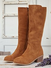 More information about Women's Minimalism Dark Brown Mid Calf Boots – Faux Suede Chunky Heel Zipper Shoes for Casual Wear and Autumn Outfits