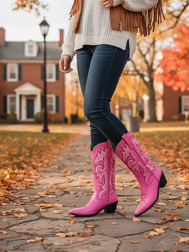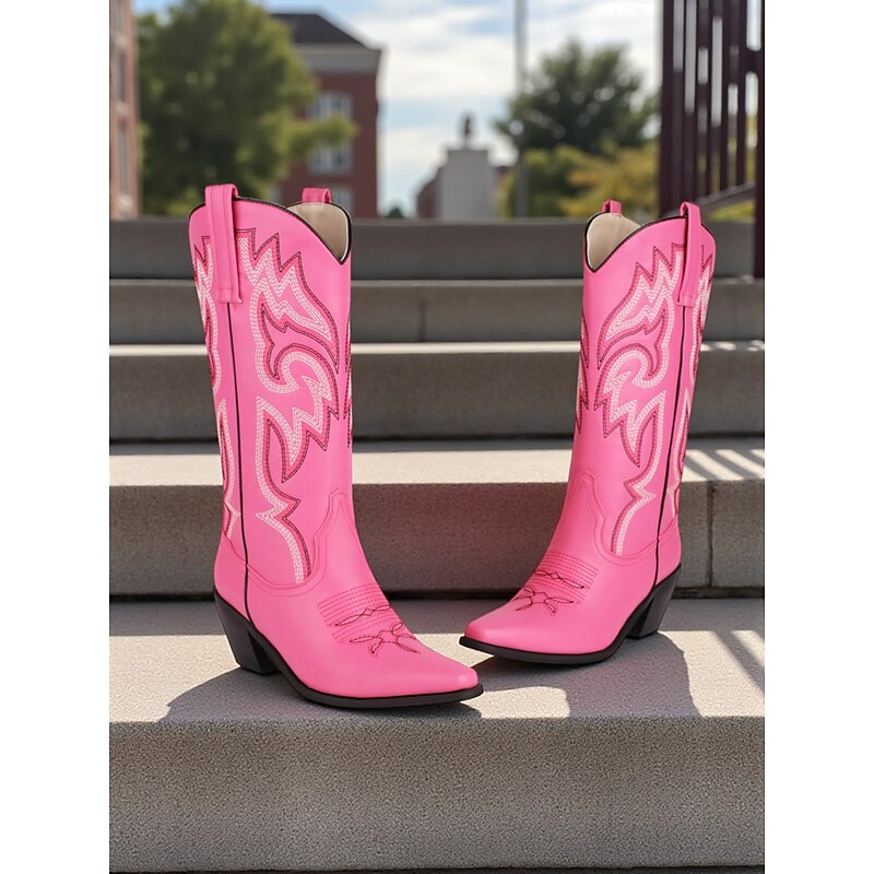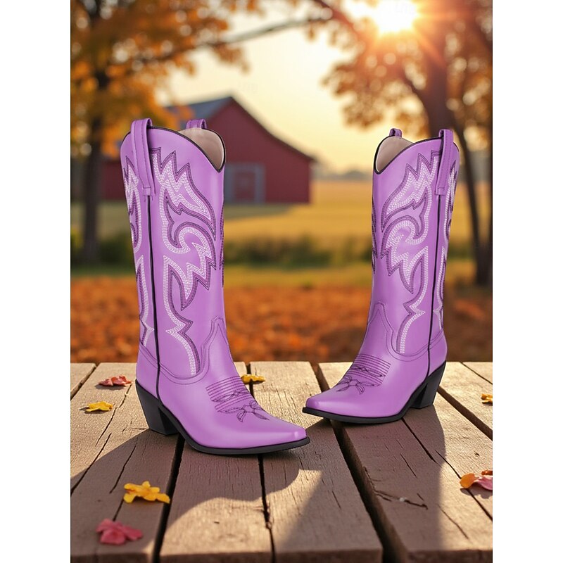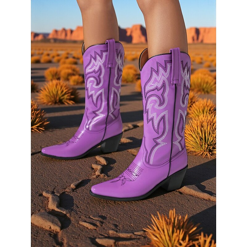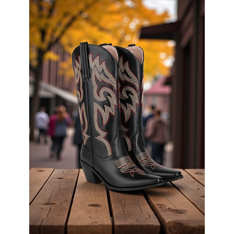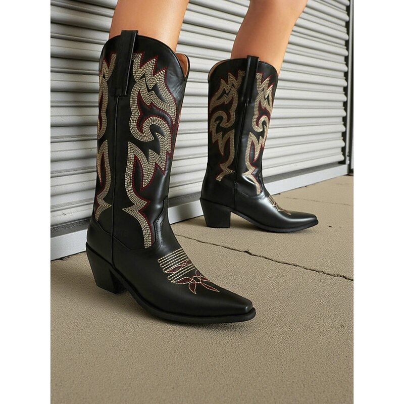 Highlights - High-quality PU upper materials - Luxurious synthetic leather lining - Stylish chunky heel - Classic block heel design - Elegant pointed toe shape - Durable rubber outsole - Stay on-trend with cowboy boots in 2025 - Stay fashionable with plus size options in 2025