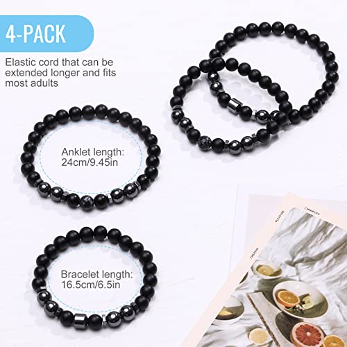 Lymph Detox Bracelet Slim Anklet for Women, Hematite Beads Obsidian Anti-Swelling Stretch for Stress Anxiety Relief, Energy Metal Bracelet 4