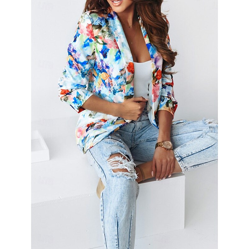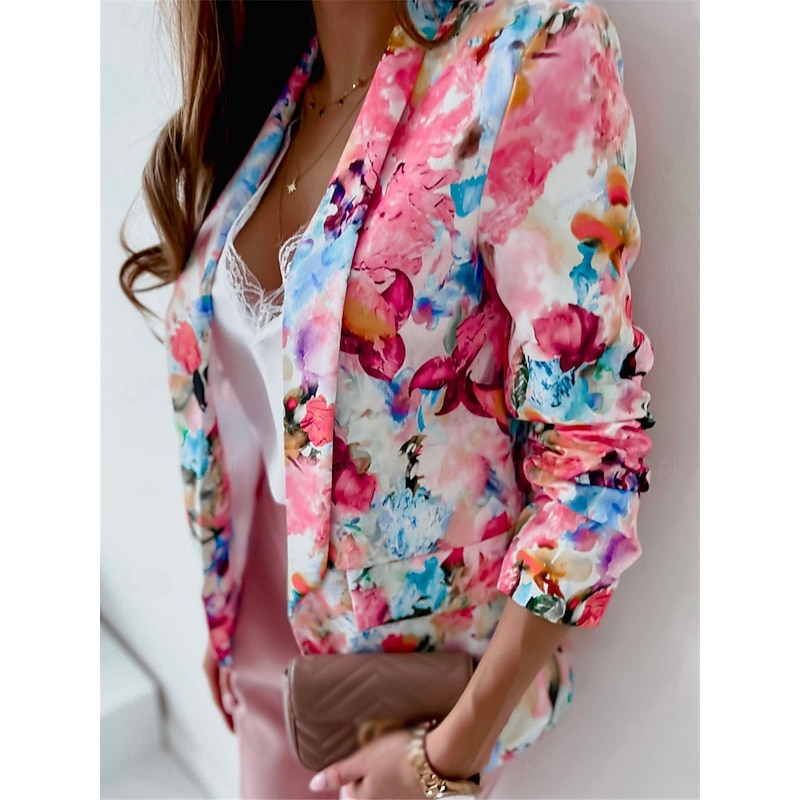 Women's Blazer Work Print Floral Breathable OL Style Regular Fit Outerwear Long Sleeve Fall Pink M 10