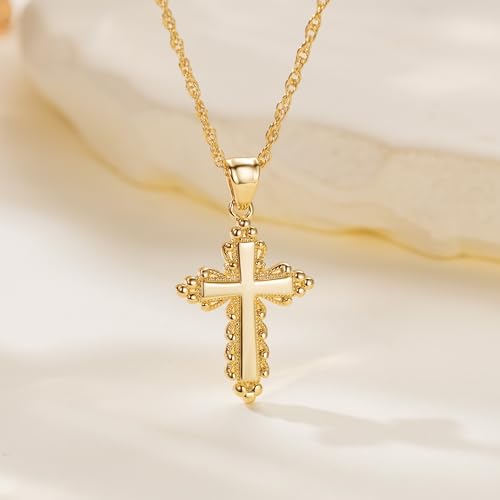 • [VERSATILE STYLE FOR MEANINGFUL] The gold cross necklaces for women blend faith and fashion. Pair the 14k gold cross necklace for women with a classic white tee or a dress. The 14k gold plated cross necklace for women adapts effortlessly to multiple styles