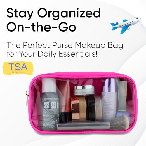 HOT ! DANCOUR Clear Makeup Bag Mini Makeup Bag for Purse Mini Pouch Purse Clear Small Cosmetic Pouch Cosmetic Travel Case (Small, Hot Pink)