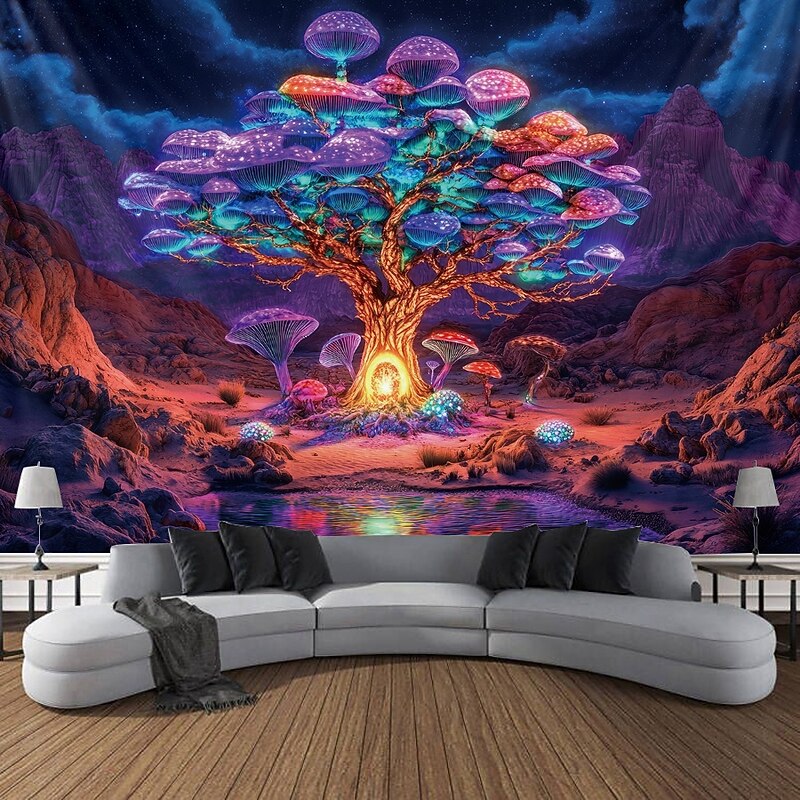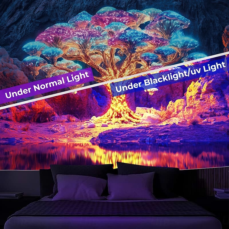 $17.99 - Blacklight Tapestry Glow in the Dark Glow Party UV Reactive Trippy Tree of Life Misty Mushroom Nature Landscape Hanging Tapestry Wall Art Mural for Living Room Bedroom 2025. Shop for cheap Blacklight Tapestries online? Buy at lightinthebox.com on sale today!