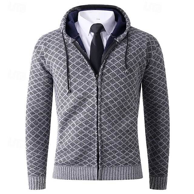 More information about Men's Sweater Dress Sweater Cardigan Sweater Zip Sweater Knit Sweater Ribbed Knit Regular Tops Knitted Ribbed Plain Hooded Fashion Shawls Casual Daily Wear Clothing Apparel Fall Winter Burgundy Navy