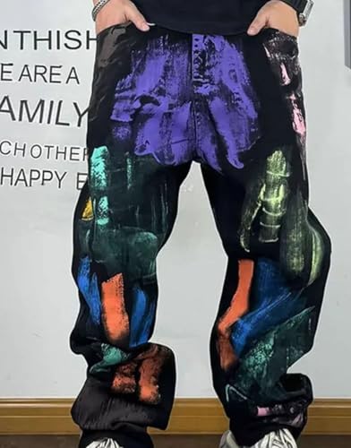 More information about Men’S Trendy Hip Hop Graffiti Baggy Straight Denim Cargo Trousers Slim Fit Full Length Button Fly Midweight Fashion Pants