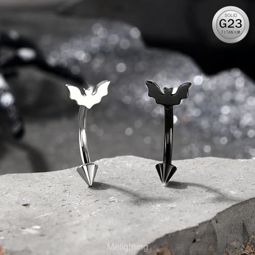 HOT ! Melighting 16G Bat Rook Piercing Jewelry, G23 Solid Titanium Eyebrow Ring, Internally Threaded Vertical Labret Lip Jewellery, Black Curved Barbells, Daith Rook Earring for Women